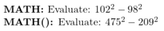 Compare some of these MATH() problems with their MATH counterparts:
